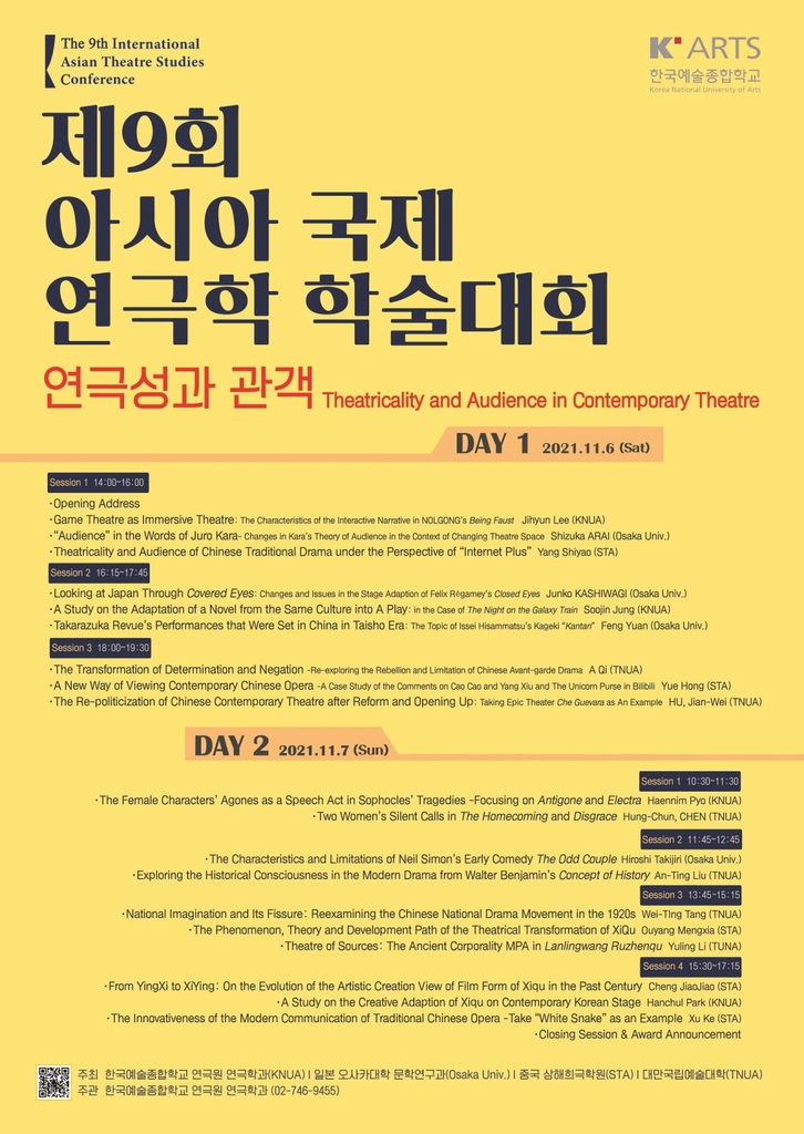 자세한 내용은 아시아 국제 연극학 학술대회 홈페이지(https://iatsc.org/) 참고.