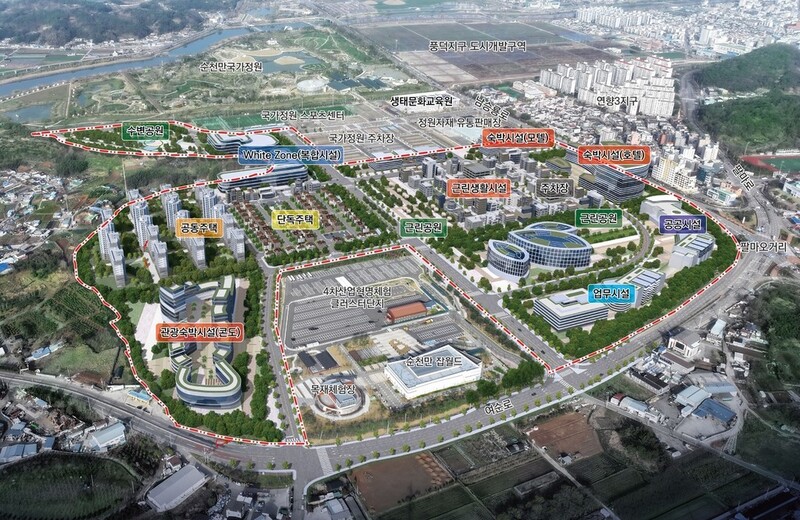 순천시는 연향동, 해룡면 대안리 일원 48만8천459㎡(약 14만8천평)에 공동주택과 함께 호텔, 콘도, 공공·업무·복합시설, 근린공원 등을 조성할 방침이다.
