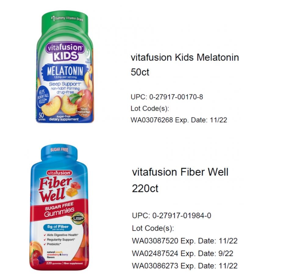 리콜 대상 제품은 비타퓨전 키즈 메라토닌·파이버웰·슬립웰·멀티바이츠 등으로, 작년 10월 29일∼11월 3일에 제조됐다.