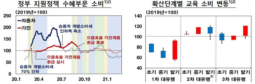교육 소비는 1차 대유행기에 위축됐지만 2차 대유행기부터는 큰 영향을 받지 않았다.