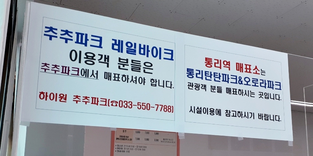 그러나 통리역에서는 하이원 추추파크의 레일바이크 표를 살 수 없다.