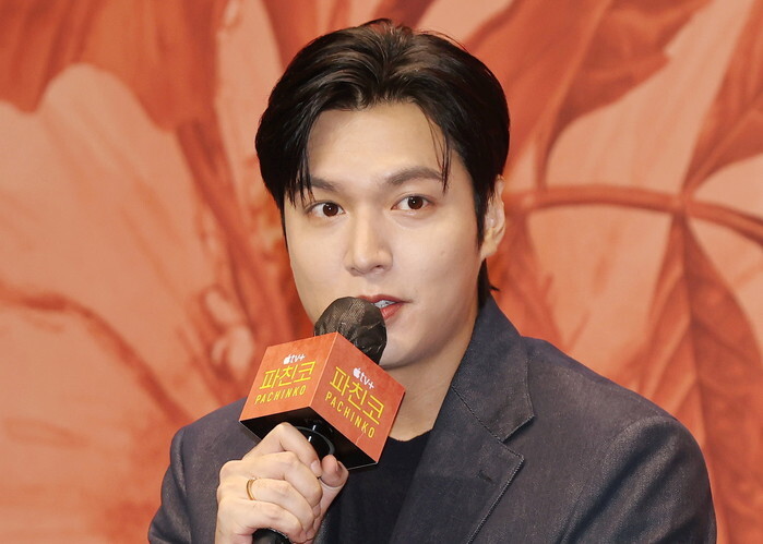 South Korean actor Lee Min-ho, who stars in Apple TV+'s "Pachinko" Season 2, responds to reporters' questions during a showcase in Seoul on Aug. 23, 2024. Based on the 2017 bestselling novel by Korean American author Lee Min-jin, the eight-episode series is a sprawling, multilingual epic that examines four generations of a Korean family during the Japanese occupation of Korea and the subsequent racism that followed. (Yonhap)
