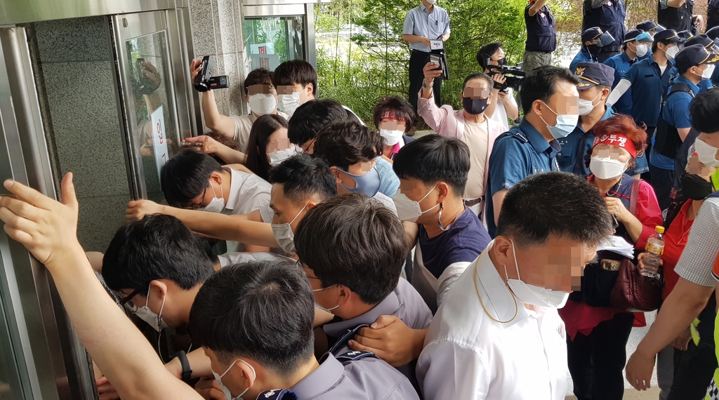 "시장 만나겠다" 청사 진입 시도…시청 노조, 폭행 시위자 고발