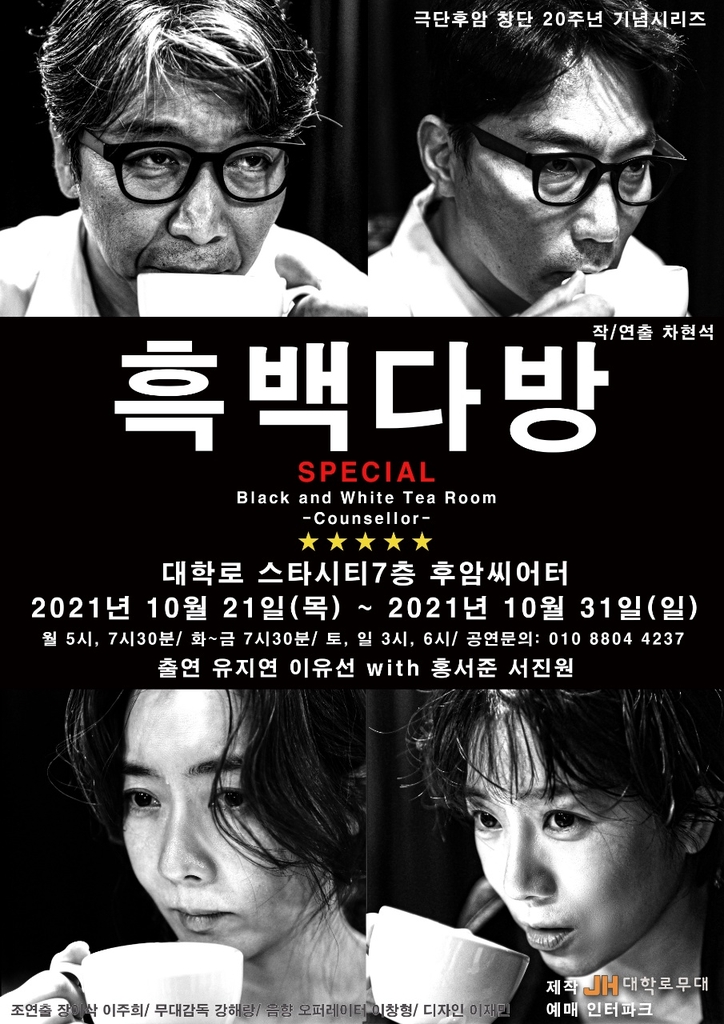 차현석 연출의 '흑백다방'은 1980년대 민주화 시절 발생한 가해자와 피해자의 관계를 다룬 작품이다. 부산 남포동을 배경으로 상처받은 사람에게 카운슬링하는 다방 주인(서진원·홍서준)에게 과거의 사람인 손님(유지연·이유선)이 찾아오면서 벌어지는 이야기를 그렸다.