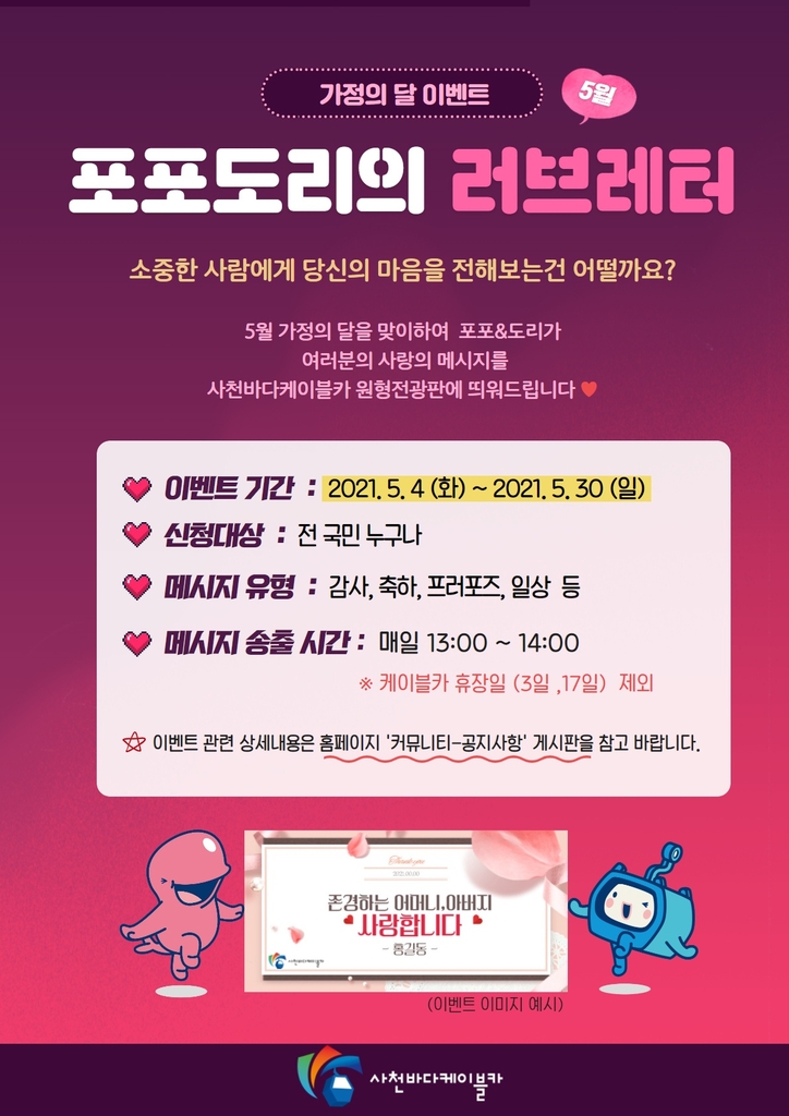 사천시시설관리공단, '포포&도리의 러브레터' 이벤트