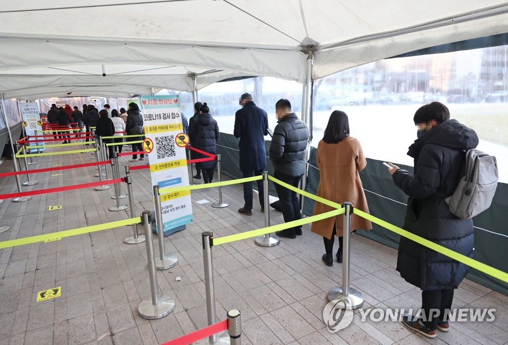 | ▲ People line up to get tested for COVID-19 at a makeshift clinic in Seoul on Dec. 30, 2021. (Yonhap) |