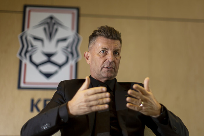 Colin Bell, head coach of the South Korean women's national football team, holds an interview with Yonhap News Agency at the headquarters of the Korea Football Association in Seoul on Jan. 18, 2023. (Yonhap)