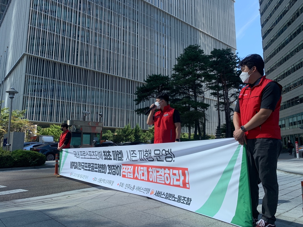이날 서울 용산구 LS타워 앞에서 열린 기자회견에서 허준 민주노총 서비스연맹 서비스일반노동조합 KPGA 지회장은 "최근 KPGA에서는 직장 내 동성 성추행 사건을 시작으로 각종 부조리 사항이 언론을 통해 여러 차례 드러났다"며 "이 사건들의 본질은 경영진이 가해자를 비호하고 졸속으로 처리하려다가 여기까지 오게 된 것"이라고 주장했다.