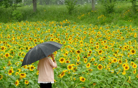 100만 송이에 이르는 해바라기가 사람들의 왕래가 잦은 강 반대편 둑 쪽을 바라보고 일제히 피었다. 수려한 강 풍경과 어우러져 절로 탄성을 자아낸다.