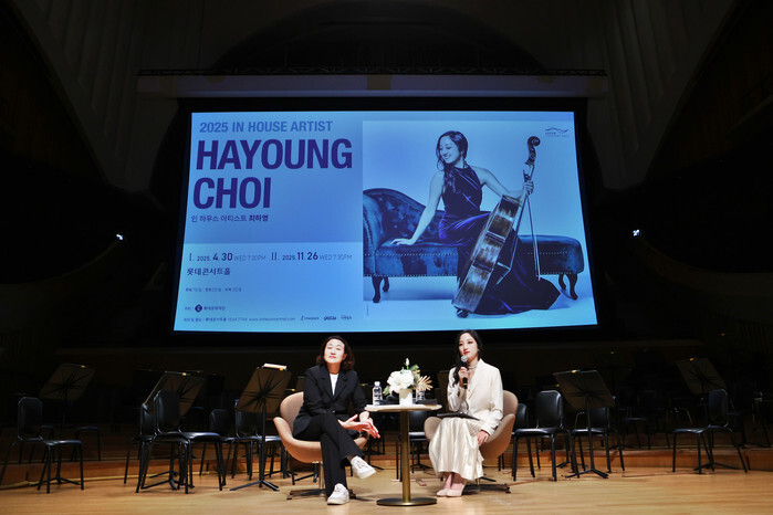 South Korean cellist Choi Ha-young, selected as the 2025 Lotte Concert Hall's "In House Artist," speaks at a press conference in Seoul on Nov. 21, 2024. (Yonhap)