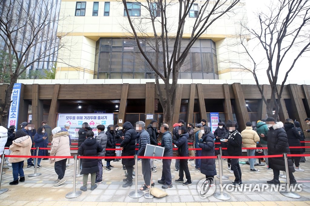 | ▲ People wait in line to get tested for COVID-19 at a testing station in Seoul's eastern district of Songpa on Dec. 16, 2021. (Yonhap) |