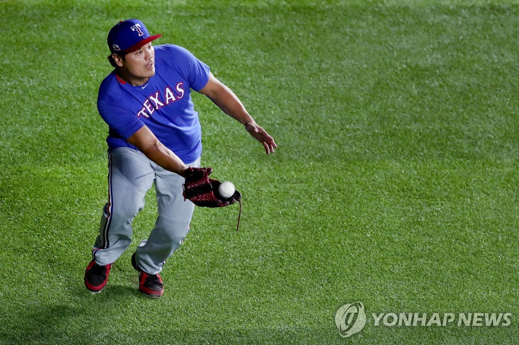 | ▲ In this Getty Images file photo from July 3, 2020, Choo Shin-soo of the Texas Rangers makes a catch during a workout at Globe Life Field in Arlington, Texas. (Yonhap) |
