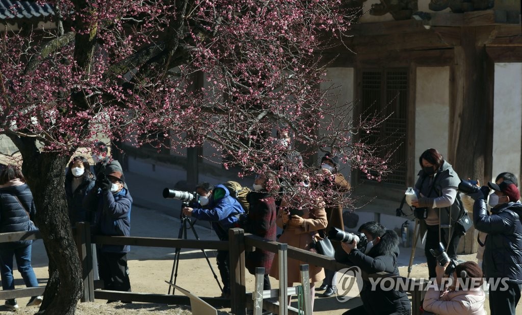 [픽! 양산] 입춘 앞두고 통도사 홍매화 꽃망울 터뜨려