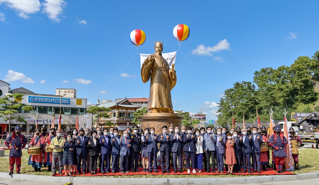 공주시는 18일 공산성 금서루 앞 연문광장에서 김정섭 시장과 이종운 시의회 의장, 시민과 관광객들이 참석한 가운데 동상 제막 행사를 했다.