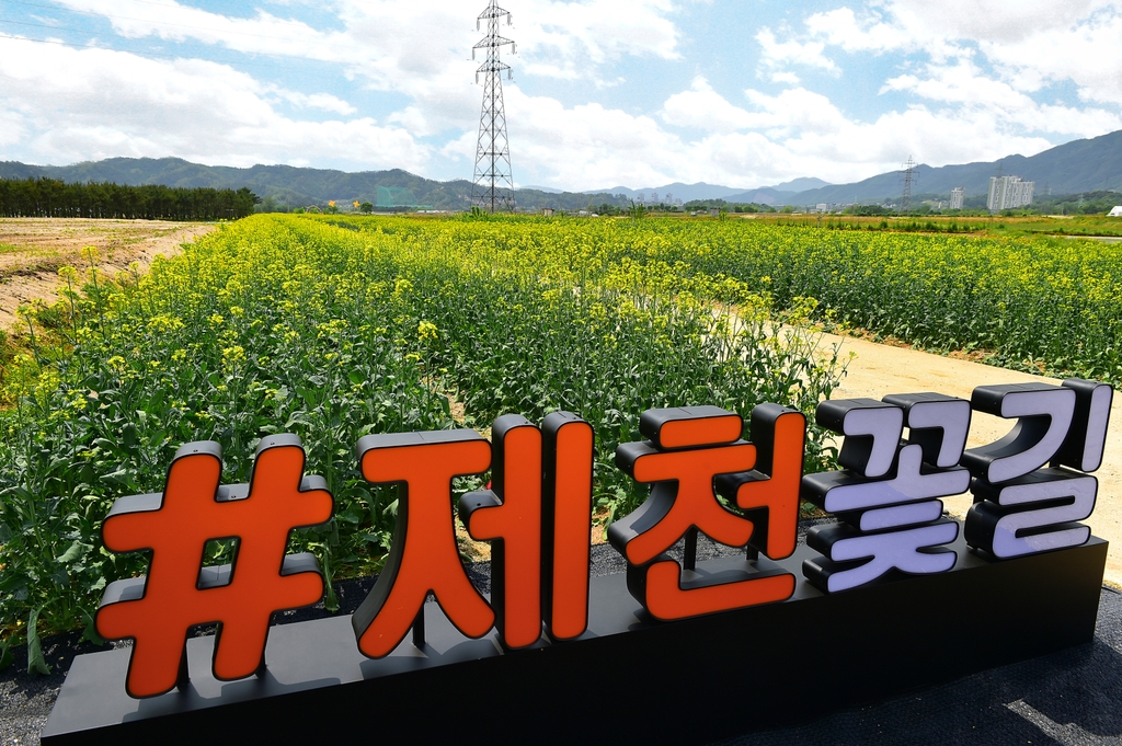 제천시는 의림지와 도심을 잇는 의림지뜰 3천800여㎡와 이곳으로 통하는 길 500여m에 유채꽃밭을 조성했다.