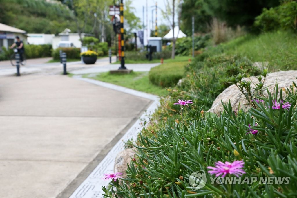 | ▲ 봄꽃이 활짝 (포항=연합뉴스) 손대성 기자 = 가을이 한창인 13일 경북 포항 철길숲에 주로 봄에 개화하는 송엽국 꽃이 피어 있다. 2021.10.13 sds123@yna.co.kr |