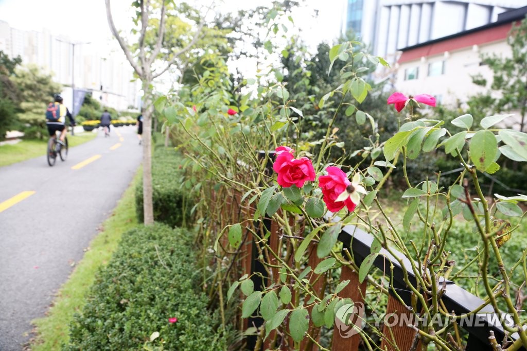 | ▲ 활짝 핀 장미 (포항=연합뉴스) 손대성 기자 = 가을이 한창인 13일 경북 포항 철길숲에 주로 봄에 개화하는 장미꽃이 피어 있다. 2021.10.13 sds123@yna.co.kr |