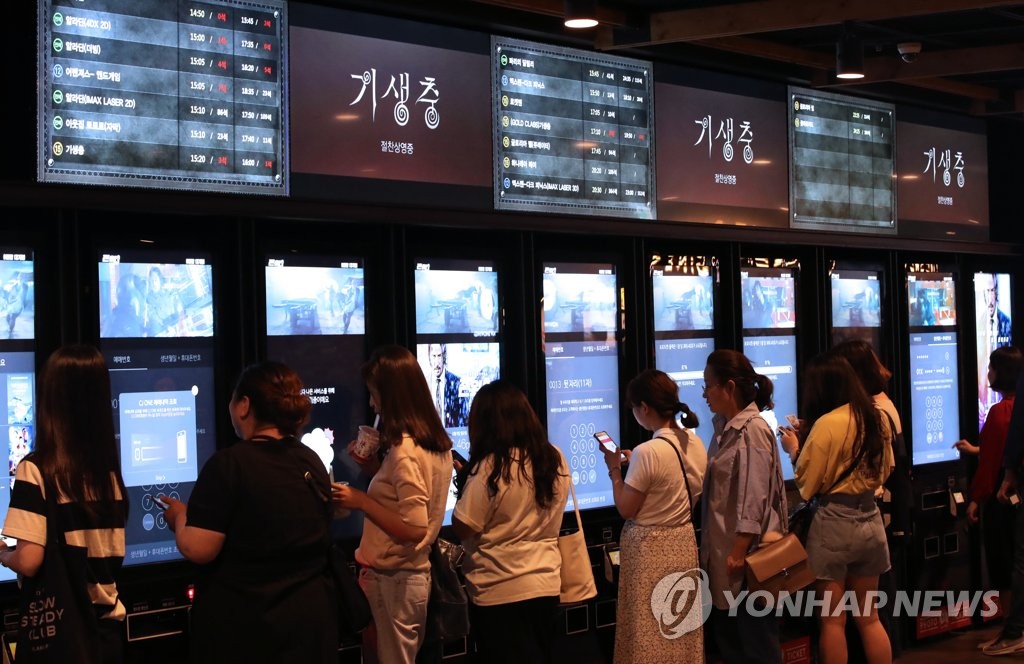 | ▲ This file photo, taken on June 9, 2019, shows people buying tickets for the Oscar-winning movie "Parasite" in a Seoul theater. (Yonhap) |