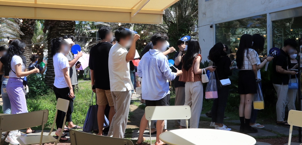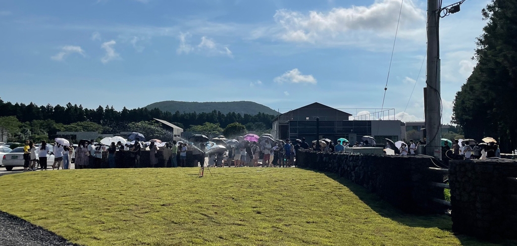 그늘 밖에서 줄을 서 있는 관광객과 도민은 오전부터 뜨거운 열기를 내뿜는 태양 아래서 연신 부채질을 해댔다.