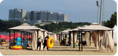 철저한 시설물 방역, 공간구획제, 대형 가족형 파라솔 설치 등 다양한 신규 방역정책을 실시한 점이 좋은 평가를 받았다.
