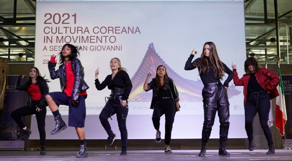 | ▲ 이탈리아 K-팝 팬의 군무 (밀라노=연합뉴스) 23일 오후(현지시간) 이탈리아 밀라노와 맞닿은 도시 세스토 산 조반니의 한 이벤트홀에서 열린 'K-팝 페스티벌'에서 참가자들이 공연을 펼치고 있다. 2021.10.25 [주밀라노 총영사관 제공. 재판매 및 DB 금지] photo@yna.co.kr |