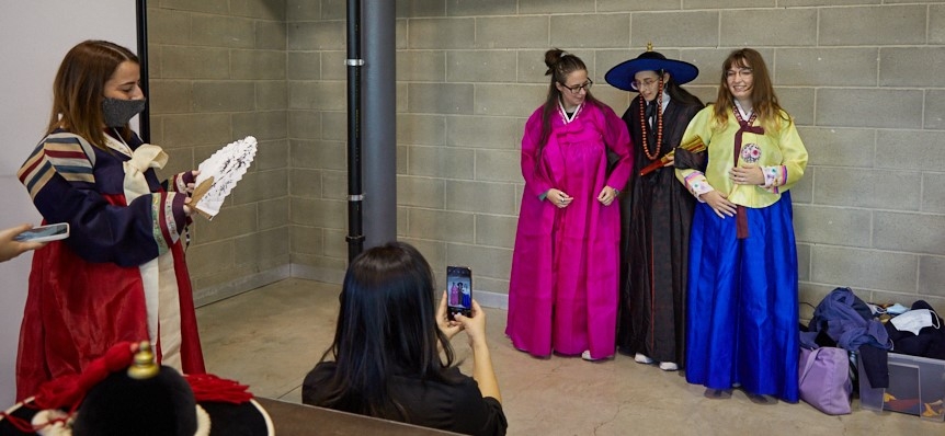 | ▲ 이탈리아인들의 한복 체험 (밀라노=연합뉴스) 24일(현지시간) 한국주간 행사에서 이탈리아인들이 한복을 입고 기념사진을 찍고 있다. 2021.10.25. [주밀라노 총영사관 제공. 재판매 및 DB 금지] photo@yna.co.kr |