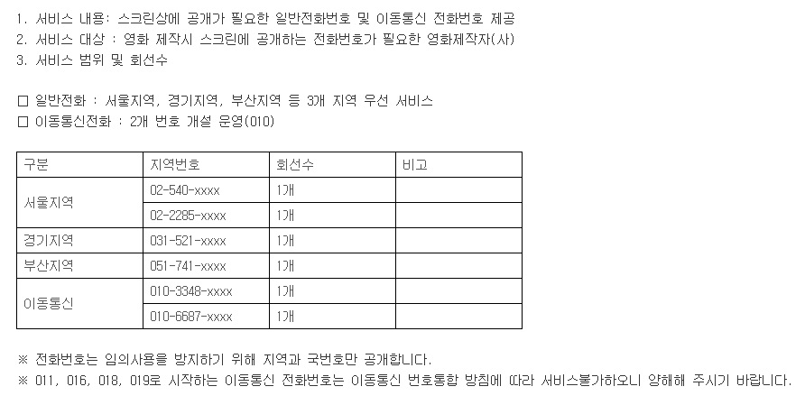 | ▲ '한국영화 스크린 노출용 전화번호 제공 서비스' 안내 [출처: 영화진흥위원회] |