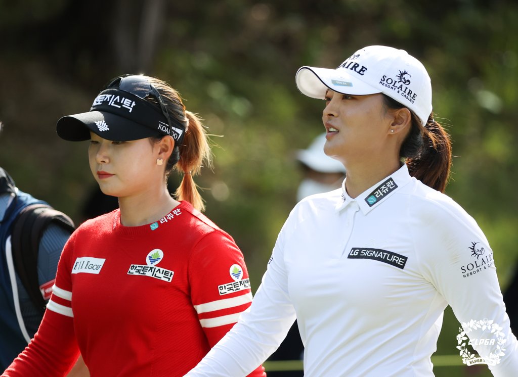 | ▲ 티샷 후 이동하는 임희정-고진영 (서울=연합뉴스) 24일 부산 기장군 LPGA 인터내셔널 부산에서 열린 미국 여자프로골프(LPGA) 투어 BMW 레이디스 챔피언십 최종 라운드 5번 홀에서 임희정(왼쪽)과 고진영이 티샷 후 이동하고 있다. 2021.10.24 [KLPGA 제공. 재판매 및 DB 금지] photo@yna.co.kr |