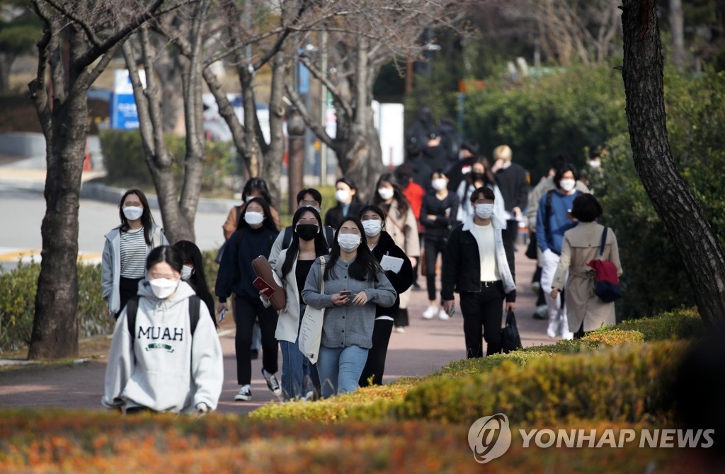 | ▲ Students wearing masks walk around Chosun University's campus in Gwangju, 330 kilometers southwest of Seoul, on March 8, 2021. (Yonhap) |