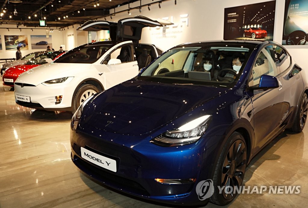(서울=연합뉴스) 장하나 기자 = 테슬라가 전기 스포츠유틸리티차(SUV) 두번째 모델인 모델Y를 13일 국내에 처음으로 공개했다.