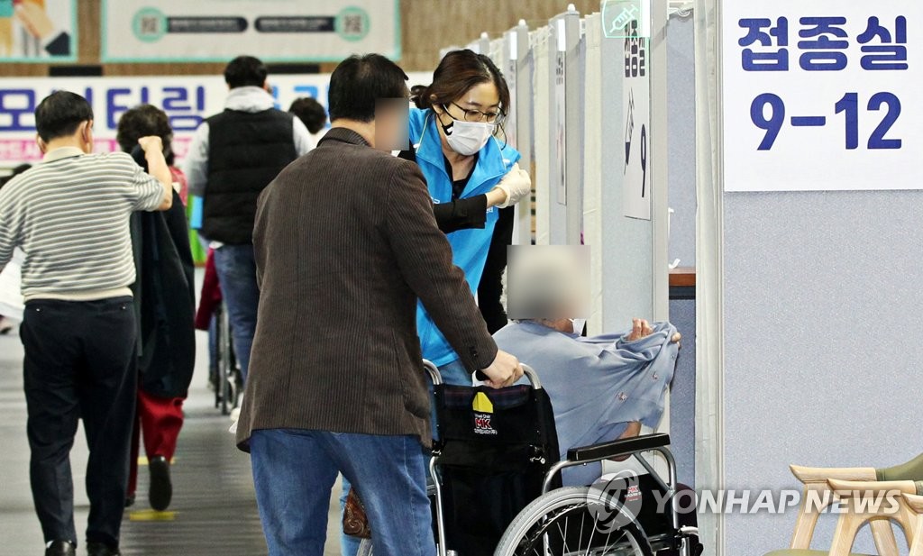 | ▲ A senior in a wheelchair gets ready for inoculation with Pfizer's COVID-19 vaccine at a vaccination center in southern Seoul on April 17, 2021, in this photo provided by the Dongjak Ward Office. (PHOTO NOT FOR SALE) (Yonhap) |