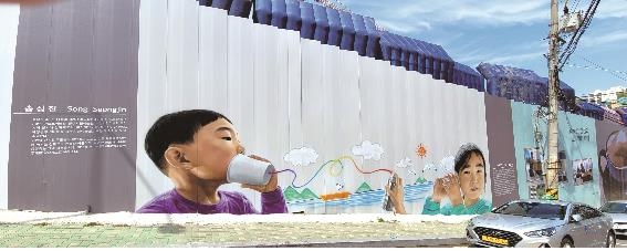 [픽! 부산] 행복주택 공사장 가림막 미술작품 갤러리 변신