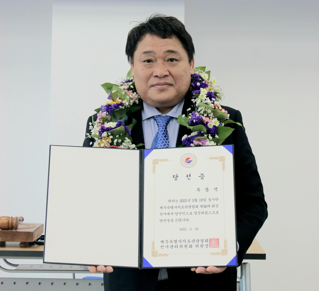 제주도관광협회는 19일 제주종합비즈니스센터 1층 회의실에서 2021년도 대의원총회를 열어 부동석(55) 현 관광협회장을 제36대 제주도관광협회장으로 선출했다.