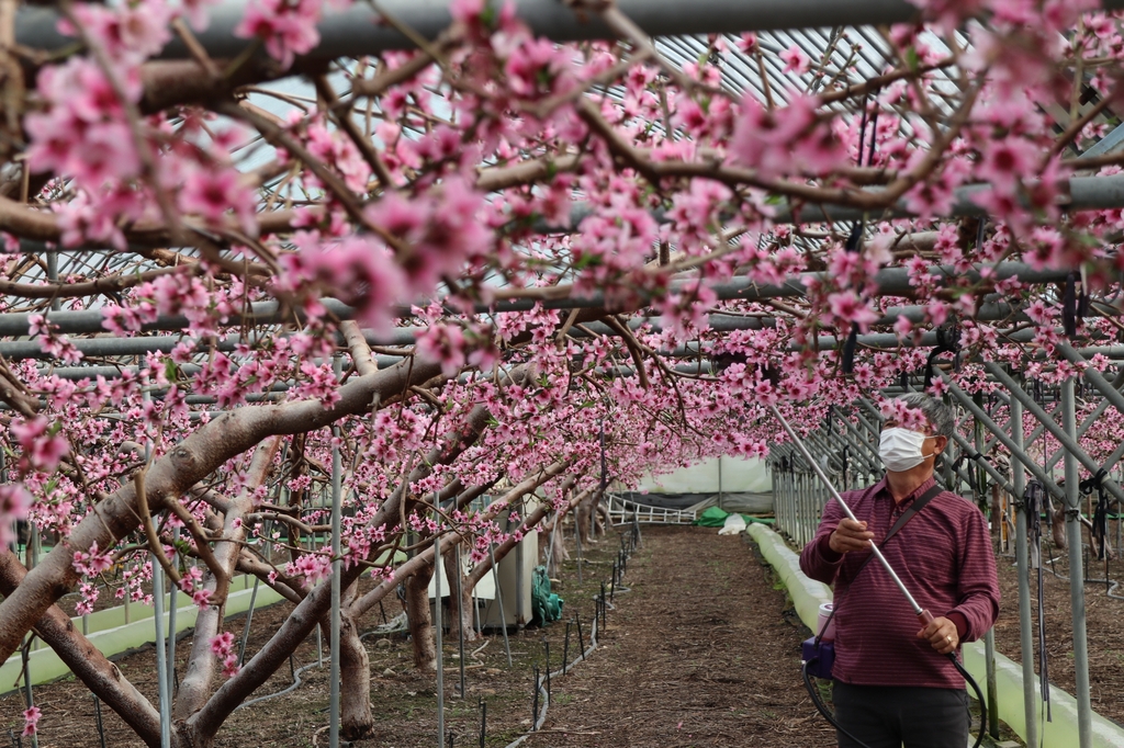노지의 복숭아꽃은 4∼5월에 피지만 박씨의 비닐하우스에서는 2개월 더 일찍 핀다.