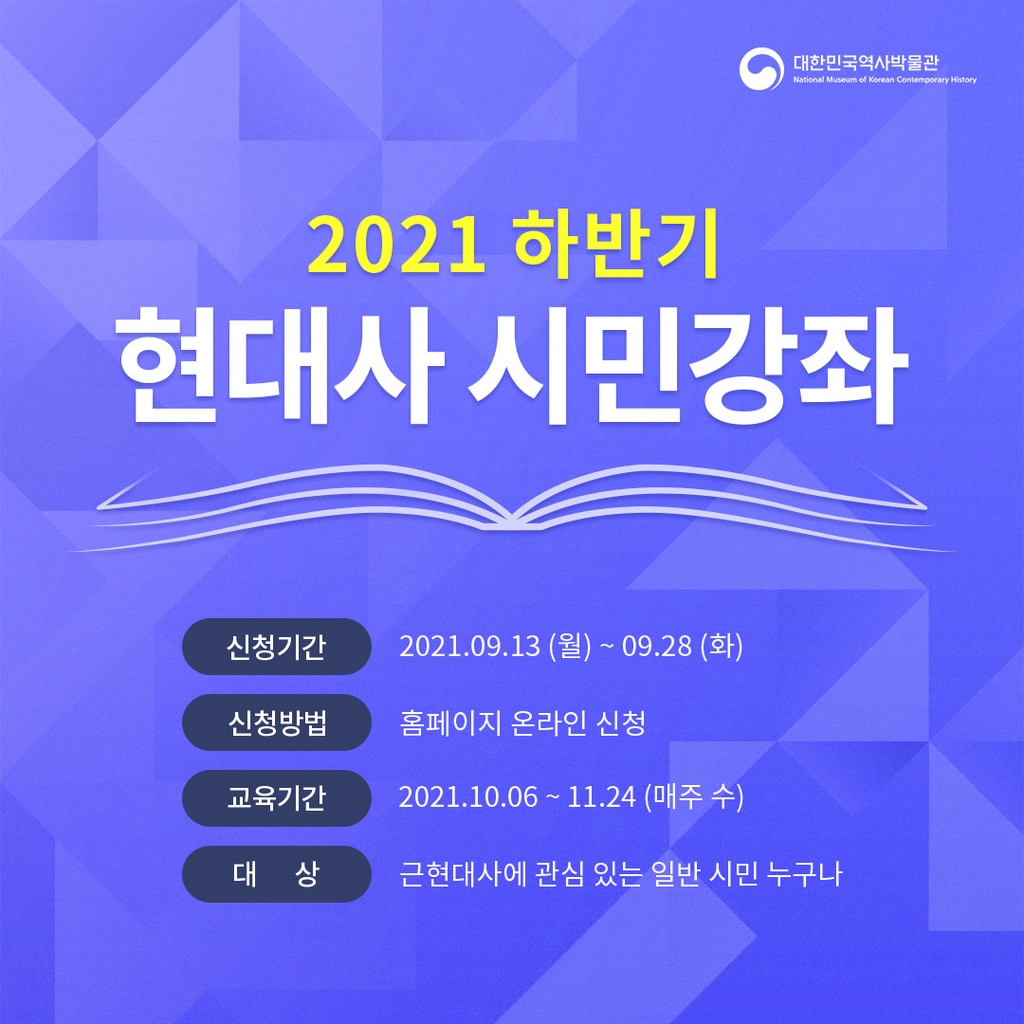 ▲ 대한민국역사박물관은 다음 달 6일부터 11월 24일까지 온라인으로 '현대사 시민강좌'를 운영한다.