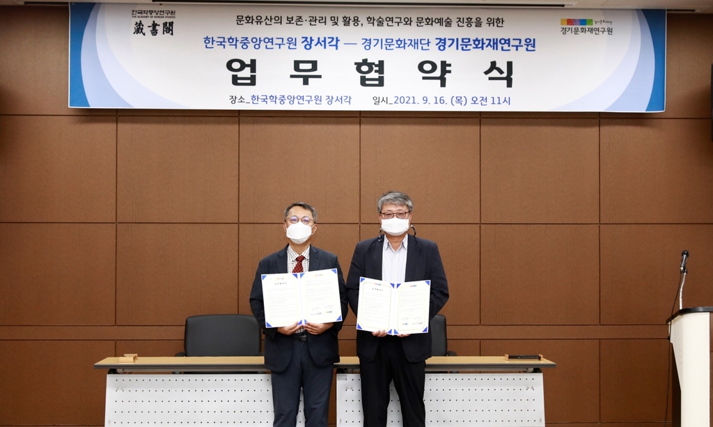 ▲ 한국학중앙연구원 장서각은 16일 경기문화재단 경기문화재연구원과 '군영등록'(軍營謄錄) 발간과 공동 연구 추진을 위한 업무협약을 했다.