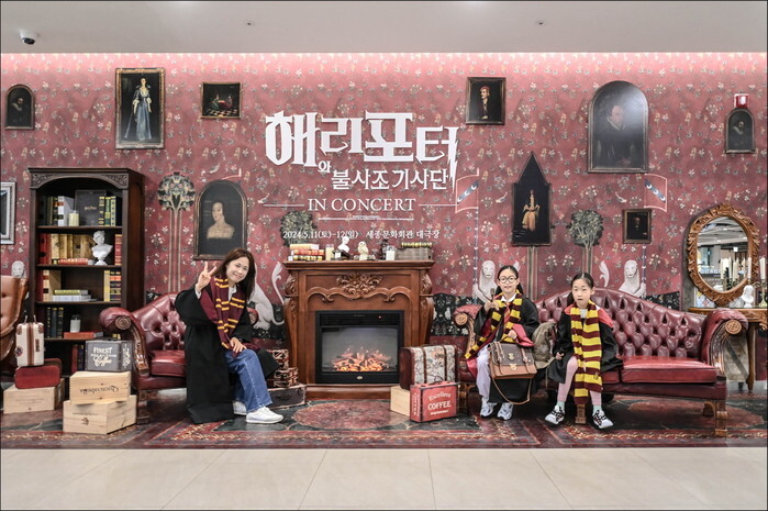 Visitors pose in a photo zone set up for "Harry Potter and the Order of the Phoenix in Concert" at the Sejong Center for the Performing Arts in Seoul on May 11, 2024, in this photo provided by the center. (PHOTO NOT FOR SALE) (Yonhap)
