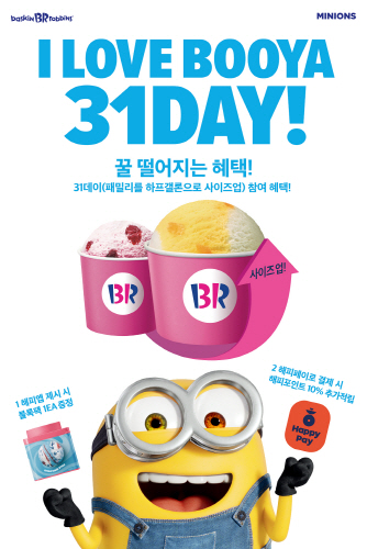 이번 행사는 배스킨라빈스가 7월 이달의 맛 '꿀·바·망(꿀에 빠진 바나나와 망고)'을 선보이면서 협업한 인기 캐릭터 '미니언즈'를 활용해 '미니언즈가 좋아하는 31데이!'의 콘셉트를 적용했다.