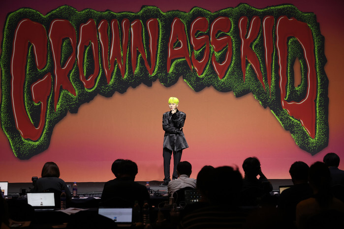 Rapper Zico introduces his new mini album, "Grown Ass Kid," during a showcase at a Seoul hotel on Aug. 1, 2022. (Yonhap)