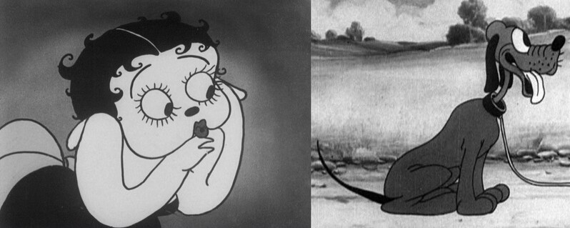 | ▲ 내년 1월 1일자로 저작권이 만료되는 애니메이션 캐릭터 '베티 붑'(왼쪽)과 디즈니 캐릭터 '플루토'의 초기 형태. [듀크대 퍼블릭도메인연구센터 캡처. 재판매 및 DB 금지] |