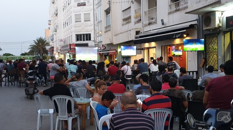 북아프리카 국가의 축구 사랑은 정말 각별하다. 중요한 축구 경기가 열리는 날이면 길거리 카페는 야외극장처럼 자리를 배열하고 정말 많은 사람이 모여 경기를 응원한다.