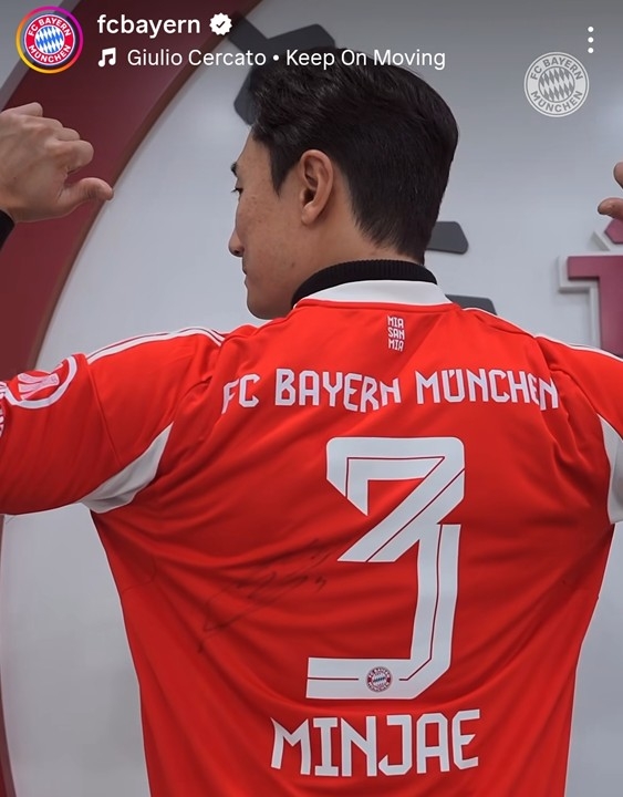 | ▲ 뮌헨 김민재의 유니폼을 입은 LG 신민재 [바이에른 뮌헨 인스타그램 캡처. 재판매 및 DB금지] |