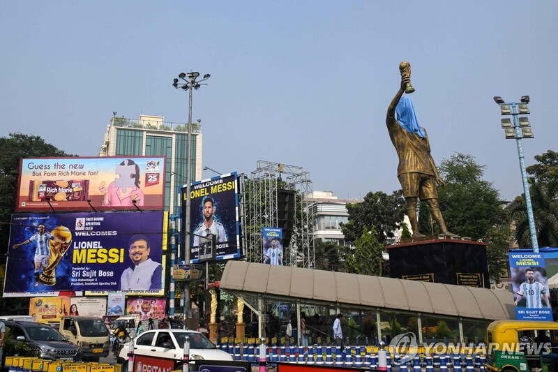 한편, 메시의 경기장 방문에 앞서 콜카타 시내에는 높이 20m가 넘는 초대형 메시 동상이 공개됐다. 동상은 메시가 월드컵 트로피를 들어 올리는 모습을 형상화한 작품으로, 서벵골주 체육 관계자 수짓 바수의 주도로 제작됐다.