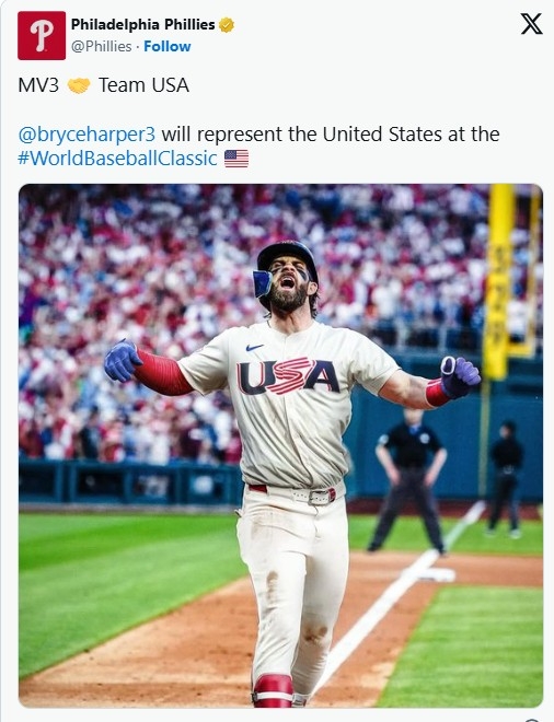 | ▲ 하퍼의 WBC 출전을 알린 필라델피아 구단 X [MLB닷컴 캡처. 재판매 및 DB 금지] |