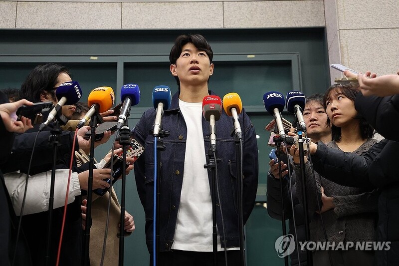 | ▲ 취재진에 둘러싸인 송성문 (영종도=연합뉴스) 김성민 기자 = 미국프로야구 메이저리그(MLB) 샌디에이고 파드리스와 4년 계약을 맺은 송성문이 23일 인천국제공항을 통해 입국한 뒤 인터뷰하고 있다. 2025.12.23 ksm7976@yna.co.kr |