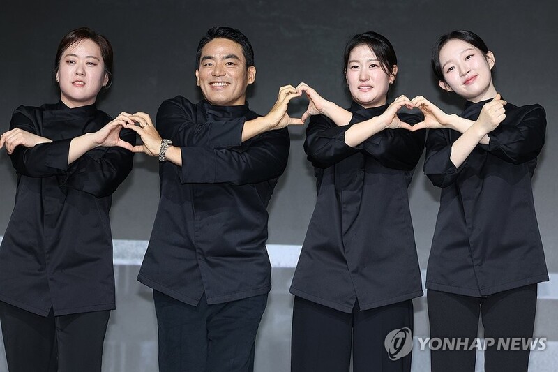 | ▲ '흑백요리사2'의 흑요리사들 (서울=연합뉴스) 류효림 기자 = '흑백요리사2'에 출연한 술빚는 윤주모(왼쪽부터), 프렌치 파파, 중식 마녀, 아기 맹수가 17일 서울 종로구 JW메리어트동대문스퀘어에서 열린 넷플릭스 예능 '흑백요리사: 요리 계급 전쟁2' 기자간담회에서 포즈를 취하고 있다. 2025.12.17 ryousanta@yna.co.kr |
