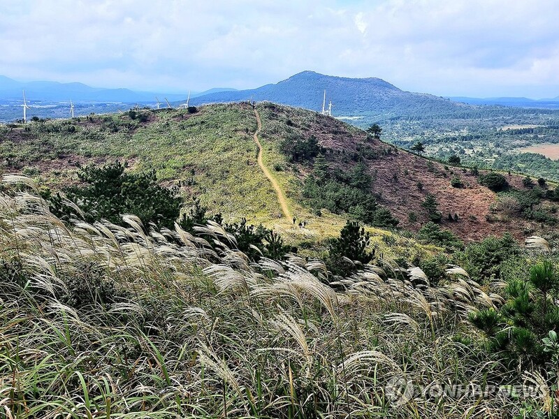 (제주=연합뉴스) 고성식 기자 = 제주 동부 산간에 일렬로 선 따라비오름, 모지오름, 좌보미오름, 용눈이오름은 약 1만5천∼1만6천년 전 비슷한 시기 동일한 지각의 힘에 의해 형성된 열극(지면 균열)에서 화산이 연속적으로 분출돼 형성된 것으로 조사됐다.