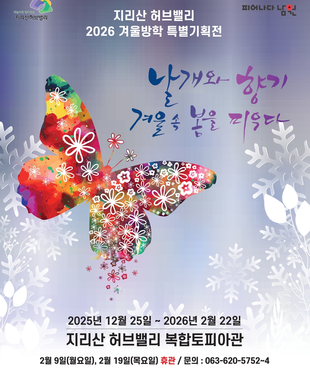 (남원=연합뉴스) 백도인 기자 = 전북 남원시는 지리산허브밸리의 복합토피아관에서 겨울방학 특별기획전 '날개와 향기, 겨울 속 봄을 피우다'를 내년 2월 22일까지 개최한다고 26일 밝혔다.