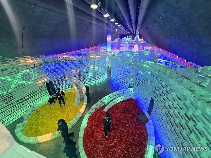| ▲ 화천 터널에 조성한 실내얼음조각광장 (화천=연합뉴스) 이상학 기자 = 20일 오후 강원 화천군 화천읍 서화산터널에 실내얼음조각광장이 개장됐다. 실내얼음조각광장에서는 이날부터 축제가 폐막하는 날까지 다양한 얼음조각을 볼 수 있다. 산천어축제는 내년 1월 10일 개막한다. 2025.12.20 hak@yna.co.kr |