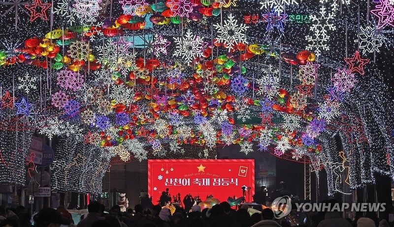 | ▲ 화천산천어축제 서막..불 밝힌 선등거리 (화천=연합뉴스) 이상학 기자 = 20일 오후 강원 화천군 화천읍 중앙로 일대 선등거리에서 야간에 다양한 조명으로 빛을 밝히는 점등행사가 열렸다. 이 행사는 산천어축제를 앞두고 축제 분위기를 끌어올리기 위해서다. 산천어축제는 내년 1월 10일 개막한다. 2025.12.20 hak@yna.co.kr |